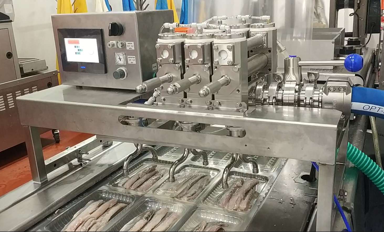 Завершены пусконаладочные работы автоматического дозатора Direct Filling для пресервной линии в Новосибирске. Дозатор установлен на термоформере Multivac R145 и выполняет автоматический розлив растительного масла 50 - 100 мл в термоформуемые контейнеры с предварительно уложенными кусочками сельди. Дозатор Direct Filling - высокоэффективное и надежное решение для фасовки жидких (растительное масло, вода, соевый соус, сливки и т.п.) и текучих пастообразных продуктов (сливочное масло, соус, кетчуп, майонез, мёд, джем, йогурт, сметана, плавленый сыр).